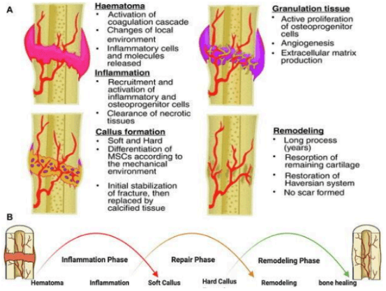 A csontszövet regenerációja három folyamatos és egymást átfedő fázison megy keresztül: